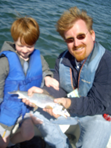 | Gary with His First Sand Bass | Gary's First Spotted Bay Bass |